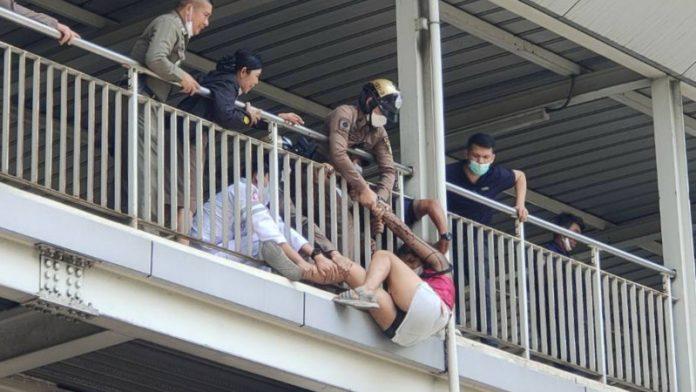 ตร.ช่วยระทึกสาวสองพยายามกระโดดสกายวอล์คหน้า ตร.ร้องเรียนไม่ได้รับความเป็นธรรมหลังถูกทำร้ายร่างกาย