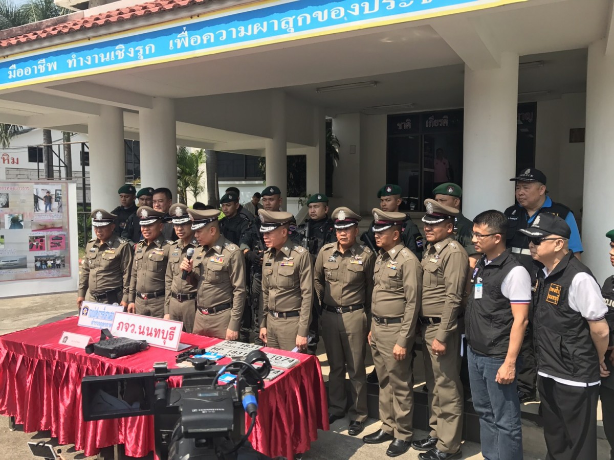 จากการเร่งรัดติดตามสืบสวนสอบสวน ทราบว่าผู้ก่อเหตุ คือ นายมนต์นที หรือเก่ง นาคโถม ได้รวบรวมพยานหลักฐานขออนุมัติหมายจับ นายมนต์นที หรือเก่งฯ ผู้ต้องหาที่ 1 ต่อศาลจังหวัดนนทบุรีตามหมายจับที่ 73 /2561 ลงวันที่ 14 กุมภาพันธ์ 2561 ข้อหา ชิงทรัพย์โดยมีและใช้อาวุธปืนฯ จากนั้นได้เร่งไล่ล่าสืบสวน กระทั่งจับกุมนายมนต์นทีหรือเก่งฯ ได้ที่ จ.ชุมพร โดยที่ข้อมือมีบาดแผลจากการทุบกระจกตู้ใส่ทอง และผู้ต้องหาเย็บแผลเอง30เข็ม