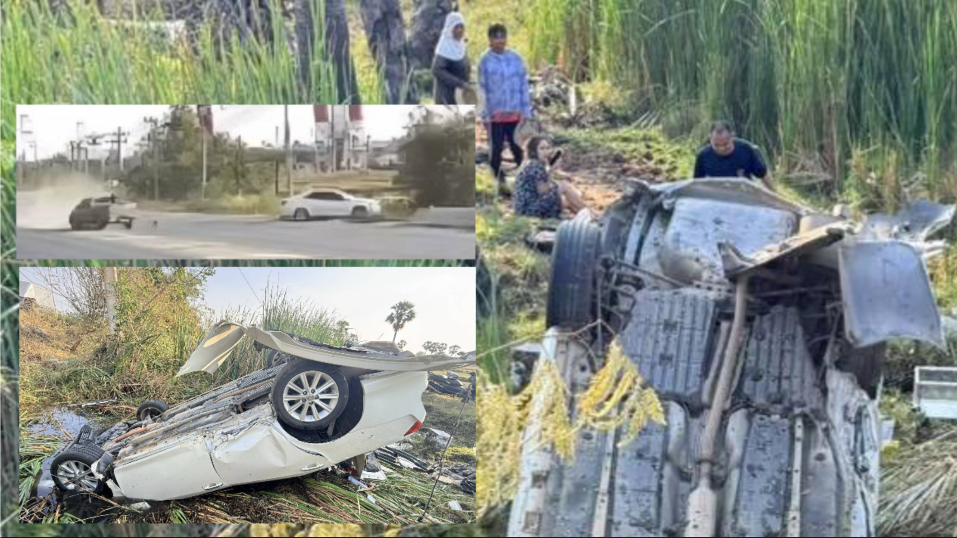 วงจรปิดจับนาที “วีโก้” เสียหลักเฉี่ยวท้ายเก๋งผู้กำกับบ้านเดื่อชัยภูมิ กระเด็นตกสะพานห้วยก๋องแก๋ง เจ็บ 2 รายพร้อมเมีย