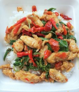 “เมนูของร้านเป็นอาหารตามสั่งทั่วไป เช่น ผัดกะเพรา ผัดพริก หมู ไก่ กุ้ง เนื้อ หมูทอดคั่วพริกเกลือ ผัดผงกะหรี่ ราดหน้า ผัดซีอิ๊ว ฯลฯ เน้นรสชาติจัดจ้าน ให้เยอะ แต่ถ้าไม่ทานเผ็ดสามารถทำให้ได้”