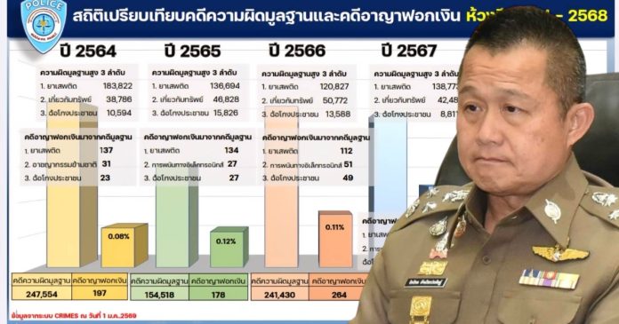 สถิติคดีความผิดมูลฐานและคดีอาญาฟอกเงินของ ศปปง.ตร. ในปี 2568 พบว่ามีการดำเนินการในความผิดมูลฐานสูง3 ลำดับแรก ได้แก่ คดียาเสพติด 182,078 คดี, คดีเกี่ยวกับทรัพย์ 69,617 คดี, คดีฉ้อโกงประชาชน 22,768 คดี