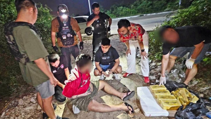 ได้วาวแผนจับกุมกระทั่งพบ นายวิษณุ หรือบิ๊ก ขับรถยนต์มาจอดที่ริมถนนภายในซอยทางเข้าหมู่บ้านแห่งหนึ่ง ในต.พันท้ายนรสิงห์ เดินถือถุงสีดำมีน้ำหนักมากลงมาจากรถฯ