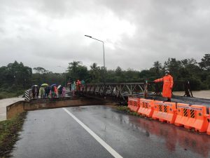 ส่วนเส้นทางที่มีน้ำท่วมสูงจนใช้การไม่ได้ หรือมีเหตุดินสไลด์ปิดถนน จะจัดกำลังประชาสัมพันธ์แจ้งเตือนผู้ขับขี่และให้ข้อมูลเส้นทางเลี่ยงผ่านทุกช่องทางสื่อ โดยเฉพาะจังหวัดขนาดใหญ่และพื้นที่ท่องเที่ยวหลัก ได้รับการเน้นย้ำให้วางแผนจราจรรองรับสถานการณ์ตลอด 24 ชั่วโมง พร้อมจัด ชุดเคลื่อนที่เร็ว เข้าพื้นที่ทันทีเมื่อเกิดเหตุฉุกเฉิน