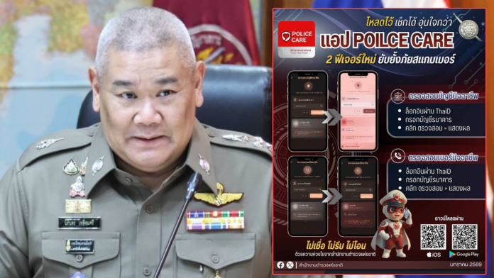 สำนักงานตำรวจแห่งชาติ เปิด 2 ฟีเจอร์ใหม่ แอปพลิเคชัน “POLICE CARE”“ตรวจสอบบัญชีมิจฉาชีพ” และ “ตรวจสอบเบอร์มิจฉาชีพ” แนะเช็กก่อน โหลดไว้ ไม่ต้องรอให้เกิดเหตุ