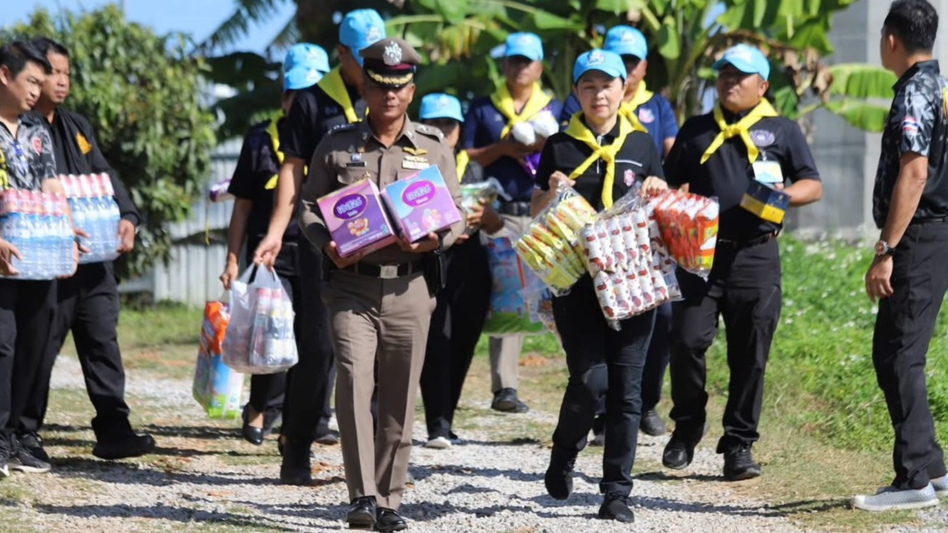 ตำรวจ ผู้นำชุมชน และเครือข่ายจิตอาสาวังน้ำเขียว ผนึกกำลังลงพื้นที่ดูแลช่วยเหลือประชาชนที่อพยพหนีภัยจากสถานการณ์ความไม่สงบบริเวณชายแดนไทย–กัมพูชา