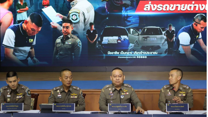 พ.ต.ท.อิทธิศักดิ์ ค้ำคูณ สวญ.ส.ทล.2 กก.3 บก.ทล.กล่าวว่า เครือข่ายแรก ตำรวจ กก.3 บก.ทล. เปิดยุทธการพิฆาตเครือข่ายหลอกลวงออนไลน์สวมป้ายรถเถื่อน ส่งขายข้ามแดน จับกุมผู้ต้องหาเครือข่ายดังกล่าวได้ 11 ราย พร้อมของกลางรถยนต์ 1 คัน