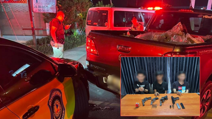 ตำรวจทางหลวง รวบ 3 วัยรุ่น ควงปืนเถื่อนปล้นช่อดอกกัญชา จากโกดัง จ.ระยอง ก่อนขับรถมาถ่ายของที่จ.ชลบุรี เจอตำรวจทางหลวงไล่จับกุมเอาไว้ได้