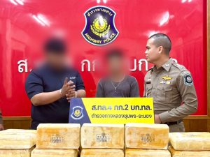 พบชาย 2 คน คือ นายพลากรณ์ เป็นผู้ขับขี่ และนายอัสฟารีส เป็นผู้โดยสาร ทั้งคู่มีท่าทางพิรุธและให้ข้อมูลวกวนจึงขอตรวจค้นรถพบถุงดำขนาดใหญ่ 3 ถุง ในช่องเก็บสัมภาระท้ายรถ ภายในเป็นมัดยาบ้าจำนวนมาก จึงได้จับกุมผู้ต้องหาทั้งสอง