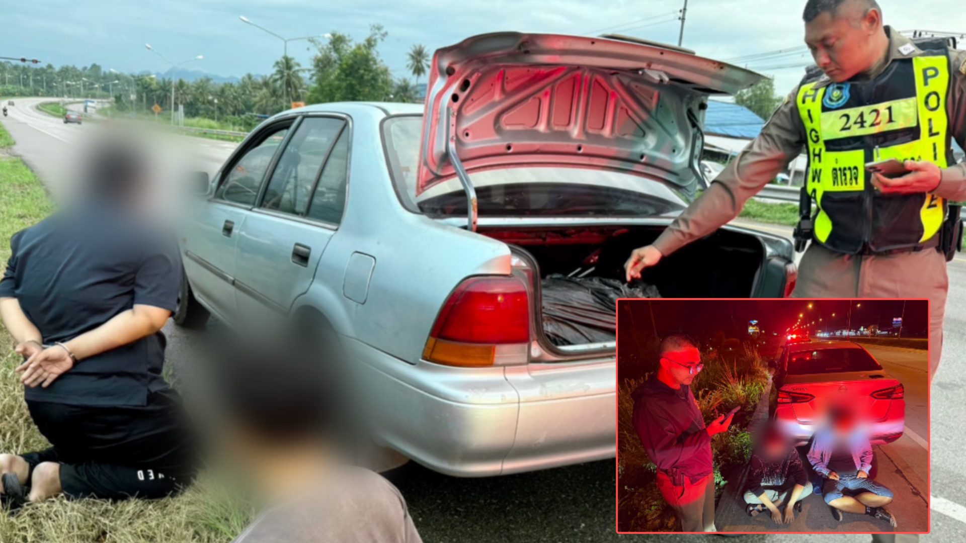 จากการสืบสวนพบว่ามีรถยนต์เก๋งอีก 1 คัน  ยี่ห้อ Nissan สีขาว ขับขี่อยู่บน ทล.41(เอเชีย) กม.146+500 (ขาล่องใต้) ต.ท่าฉาง อ.ท่าฉาง จ.สุราษฎร์ธานี  ได้สกัดให้รถคันดังกล่าวหยุดตรวจสอบ