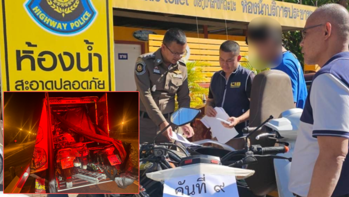 พร้อมของกลางรถที่ถูกตรวจยึด1.รถกระบะตู้ทึบ ยี่ห้อ อีซูซุ สีเทาทะเบียน 3 ฒฐ 4275 กทม. 1 คัน บรรทุกรถจักรยานยนต์ 9 คัน ส่วนรถกระบะตู้ทึบ ยี่ห้อ โตโยต้า สีขาว 1 คัน ทะเบียน บษ 5962 ฉะเชิงเทรา บรรทุกรถจักรยานยนต์ 6 คัน