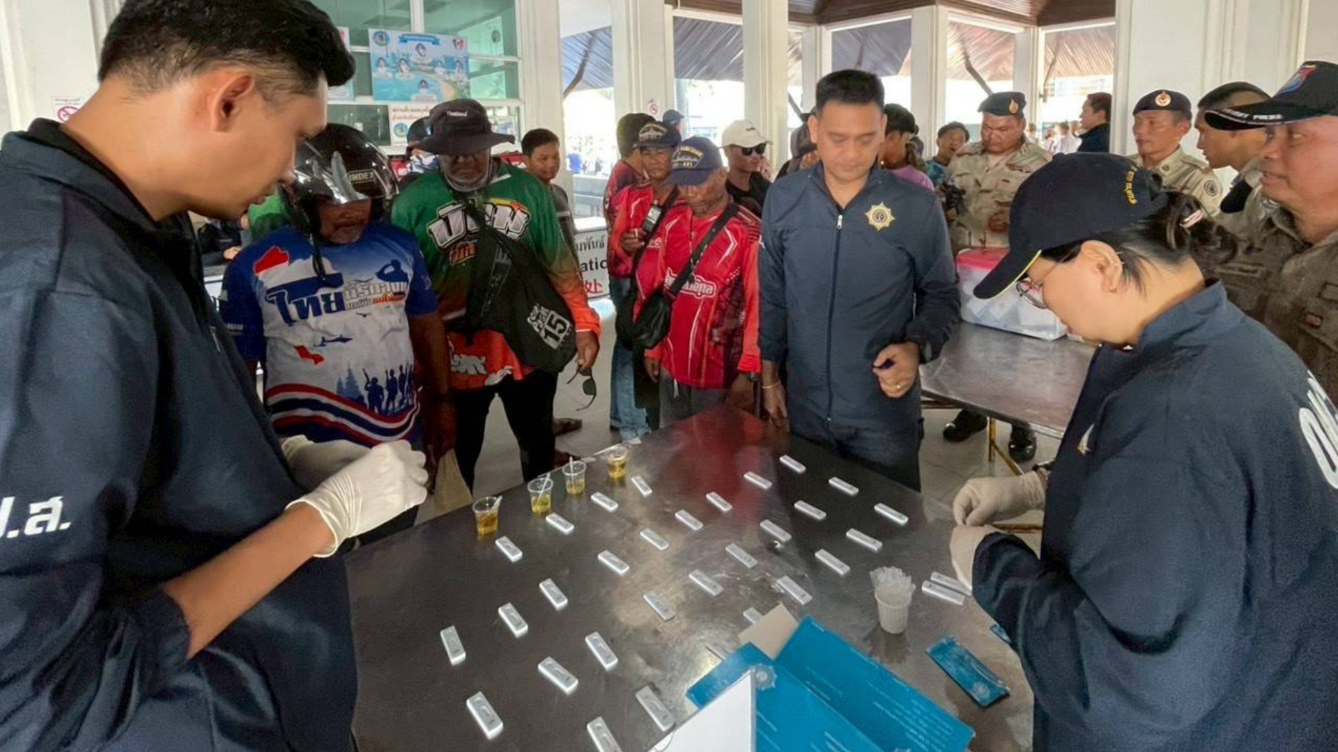 ตำรวจท่องเที่ยวพัทยาบูรณาการร่วมสุ่มตรวจปัสสาวะพนักงานขับเรือแหลมบาลีฮาย