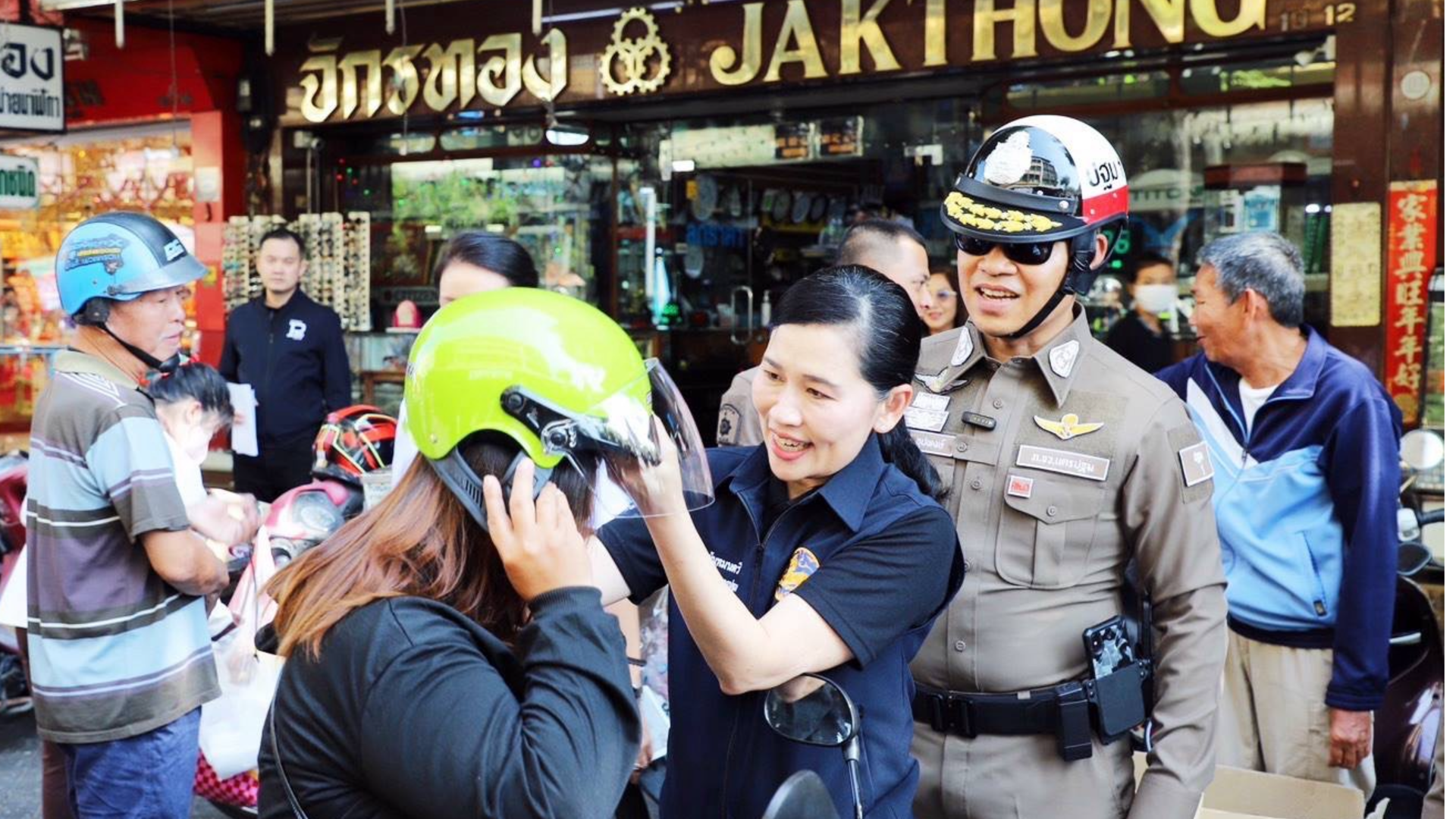 โดยวันศุกร์ที่ 26 ธันวาคม 2568 ได้มอบหมวกนิรภัยจำนวน 1,175 ใบให้กับสถานีตำรวจในสังกัดตำรวจภูธรจังหวัดนครปฐมจำนวน 1,100 ใบ และมอบให้ เยาวชนซึ่งเป็นนักเรียนของโรงเรียนพระปฐมวิทยาลัยจำนวน 50 ใบ และได้นำไปแจกให้กับประชาชนที่สัญจรไปมาที่บริเวณ ถนนซอยกลางระหว่างตลาดบน และตลาดล่าง จำนวน 25 ใบ เป็นการนำร่อง