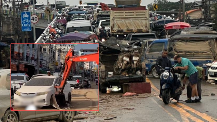 วันที่ 29 พฤศจิกายน 2568 ที่ขณะที่เจ้าหน้าที่ตำรวจดำเนินการเพื่อเคลื่อนย้ายรถอยู่นั้น มีรถแบคโฮขนาดเล็กขับผ่านบริเวณดังกล่าว เจ้าหน้าที่ตำรวจจราจร ได้ขอความร่วมมือให้ช่วยทำการเคลียร์เส้นทาง โดยให้ใช้ที่ตักของรถแบคโฮดันบริเวณล้อรถเพื่อขยับรถออกไปด้านข้าง ประมาณ 10 คัน จนสามารถเปิดช่องทางจราจรให้รถฉุกเฉินผ่านได้ และการสัญจรบนถนนคล่องตัวขึ้น