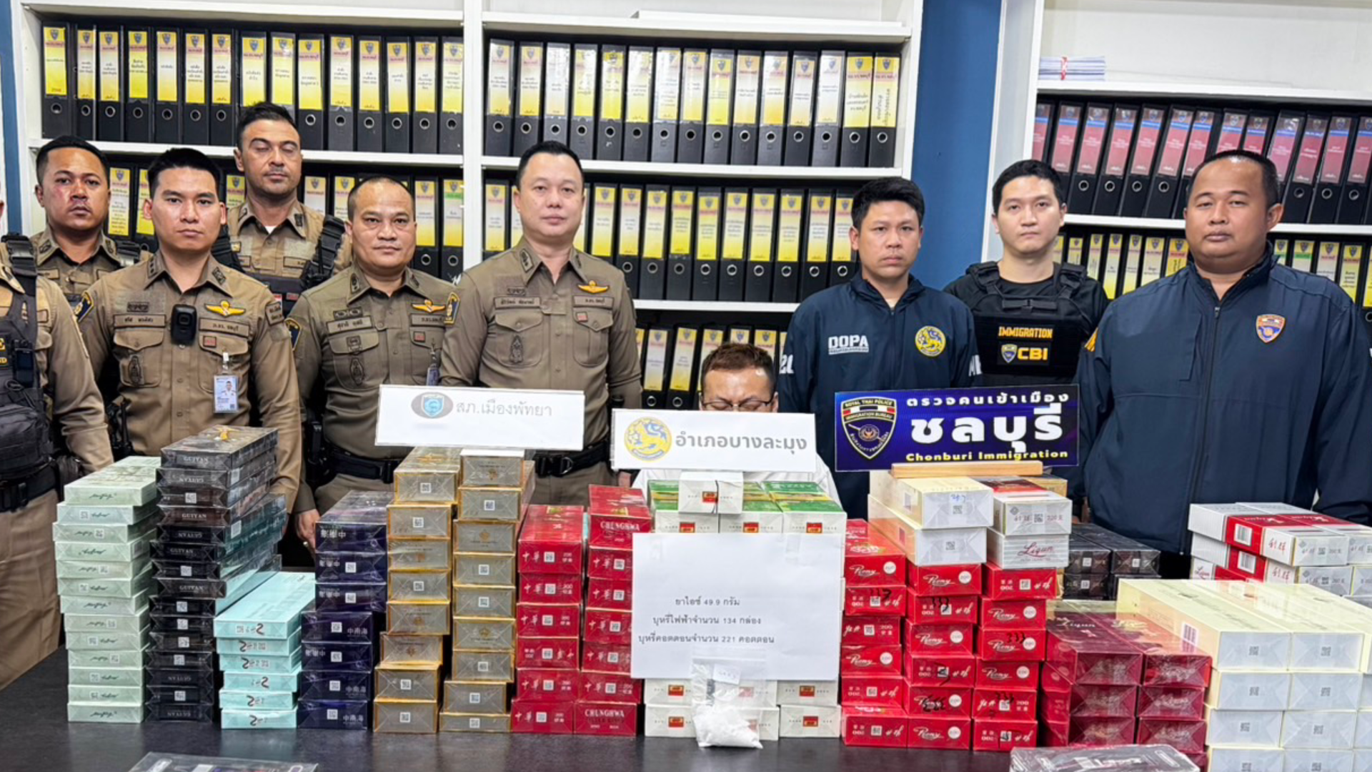 จับกุมหนุ่มจีนคอนโดหรูกลางพัทยา ยึดยาไอซ์–บุหรี่ไฟฟ้ากว่า 300 กล่อง