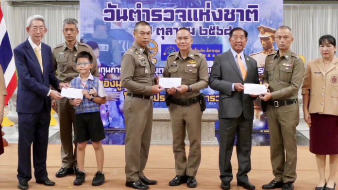 บช.น. จัดงานวันตำรวจมอบโล่โครงการตำบลยั่งยืน ประกาศเกียรติคุณตำรวจทำดี ร่วมมูลนิธิคุณแม่ลี้กิมเกียวมอบทุนบุตร-ธิดาตำรวจ 875,000 บาท