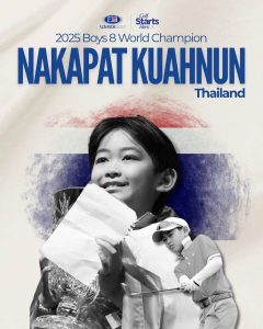 นอกจากการแข่งขันภายในประเทศแล้ว ฟูจิก็มีโอกาสไปโชว์วงสวิงในต่างแดน รายการ U.S. Kids Golf World Champion 2025 รุ่น Boy 8 และก็ไม่ทำให้ผิดหวัง “น้องฟูจิสามารถคว้าแชมป์”ในรุ่นที่แข่งมาได้เป็นการสร้างชื่อเสียงให้เด็กไทยอีกด้วย …
