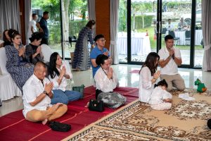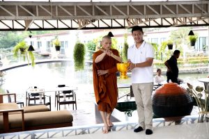 ร่วมกันถวายภัตตาหารเพลและเครื่องสังฆทาน แด่พระภิกษุสงฆ์5 รูป จากวัดช่องลม เพื่อความเป็นสิริมงคลและความเจริญรุ่งเรืองในการดำเนินการกิจการของบัวธารารีสอร์ท