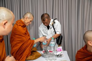 ร่วมกันถวายภัตตาหารเพลและเครื่องสังฆทาน แด่พระภิกษุสงฆ์5 รูป จากวัดช่องลม เพื่อความเป็นสิริมงคลและความเจริญรุ่งเรืองในการดำเนินการกิจการของบัวธารารีสอร์ท