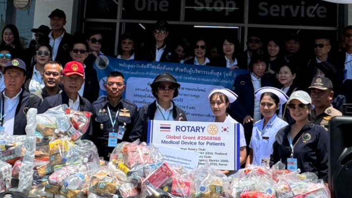 พร้อมมอบเครื่องเสียงและอุปกรณ์ในการปฏิบัติหน้าที่ให้แก่เจ้าหน้าที่ตำรวจ สภ.ลานสกาและ สภ.ปากพนัง จ.นครศรีธรรมราชและได้มอบถุงยังชีพให้แก่พี่น้องประชาชนที่ขาดโอกาส 100 ครอบครัว และบริจาคเครื่องมือแพทย์ให้แก่โรงพยาบาลเกาะสมุย พร้อมมอบเครื่องขยายเสียง อุปกรณ์สิ่งของใช้จำเป็นให้แก่โรงเรียนบ้านเด็กพิเศษและ สภ.บ่อผุด สภ.เกาะสมุยและเจ้าหน้าที่อุทยานแห่งชาติหมู่เกาะอ่างทอง อ.เกาะสมุย จ.สุราษฏร์ธานี มีเจ้าหน้าที่ที่เกี่ยวข้องและประชาชนในพื้นที่ให้การต้อนรับอย่างอบอุ่น