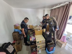 เข้าจับกุม น.ส.ดาหวัน อายุ 53 ปี นายวิกรานต์ อายุ 32 ปี ข้อหา ช่วยซ่อนเร้น ช่วยจำหน่าย ช่วยพาเอาไปเสีย ซื้อ รับจำนำ หรือรับไว้โดยประการใดซึ่งของอันตนพึงรู้ว่าเป็นของที่นำเข้ามาภายในราชอาณาจักร โดยมิได้ผ่านพิธีการศุลกากร