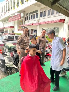จากนั้นพ.ต.อ.นิรุชพลกล่าวให้แนวทางการปฏิบัติหน้าที่ที่ดี ตรวจทรงผม ตามระเบียบที่ ตร.กำหนด