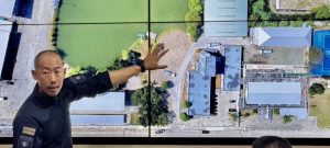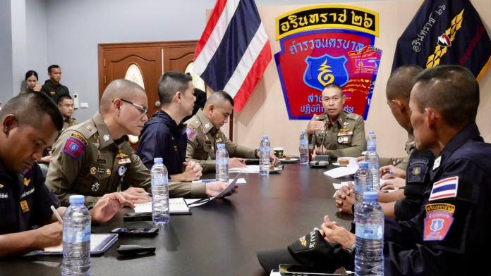 พล.ต.ท.สยาม บุญสม ผบช.น. เดินตรวจพื้นที่โดยรอบของ กก.ต่อต้านฯ อาคารชุดปฏิบัติภารกำลังพล ลานจอดรถปฏิบัติการ