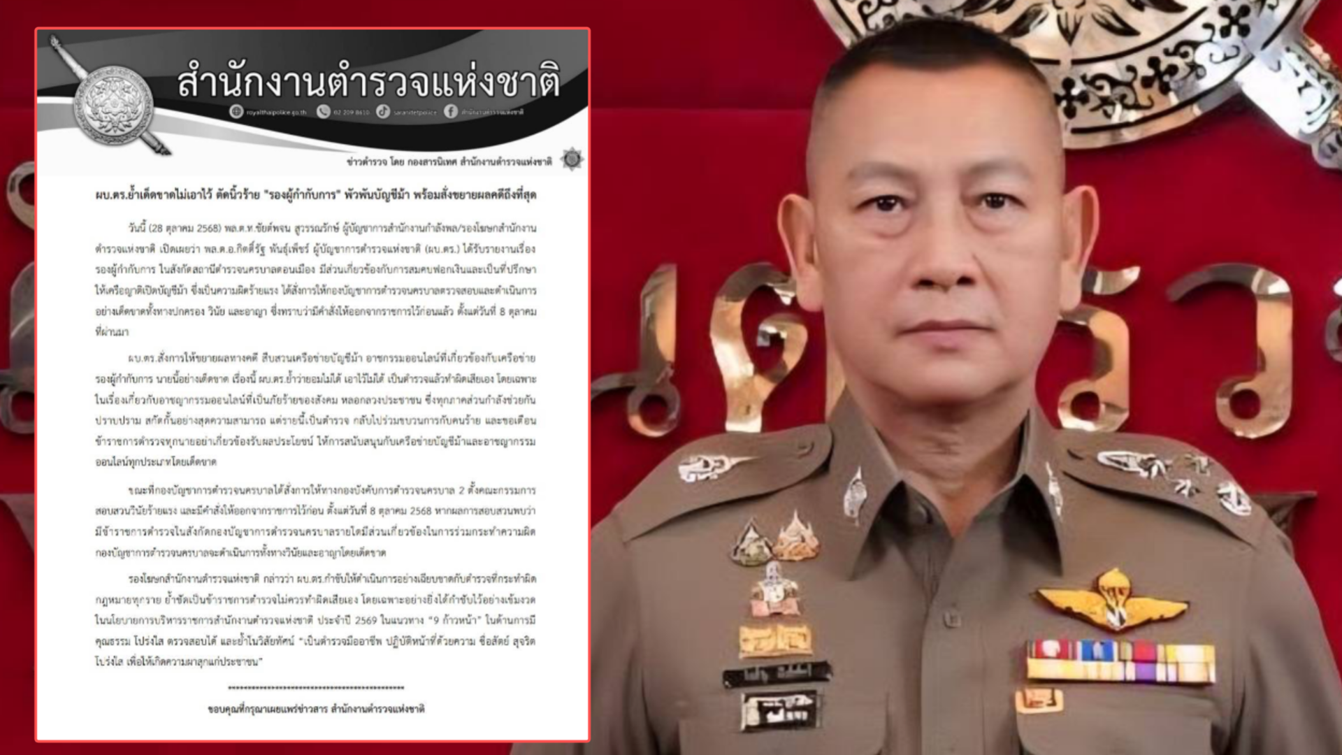 ผบ.ตร.ย้ำเด็ดขาดไม่เอาไว้ ตัดนิ้วร้าย “รองผู้กำกับการ” พัวพันบัญชีม้า พร้อมสั่งขยายผลคดีถึงที่สุด