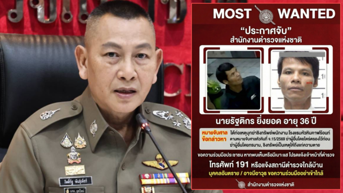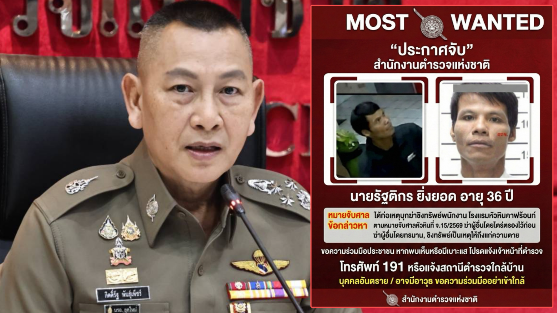 พล.ต.อ.กิตติ์รัฐ พันธุ์เพ็ชร์ ผบ.ตร. สั่งการด่วนที่สุดให้ตำรวจภูธรภาค 7 และกองบังคับการปราบปราม กองบัญชาการตำรวจสอบสวนกลาง เร่งติดตามจับกุมผู้ต้องหาฆ่าชิงทรัพย์พนักงานโรงแรมหัวหินเมื่อช่วงเช้ามืดวันที่ 19 ม.ค.69 ที่ฃ ด้วยเป็นภัยสังคมร้ายแรง ต้องดำเนินคดี