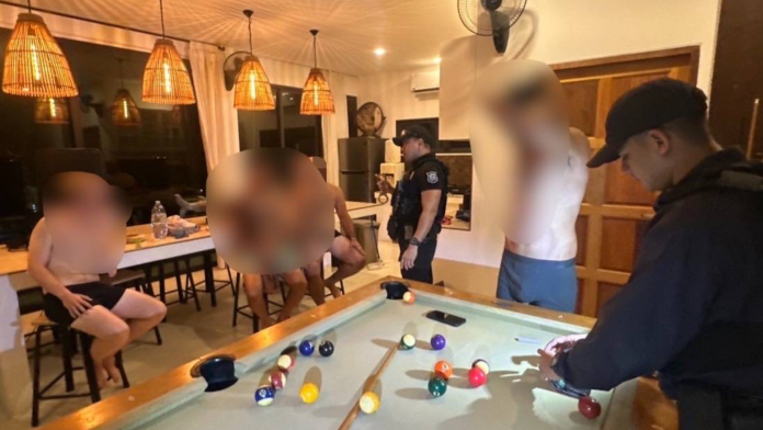 ทั้งนี้ เมื่อเวลาประมาณ 04.30 น. วันนี้ เจ้าหน้าที่ตำรวจ สภ.เกาะพะงัน จังหวัดสุราษฎร์ธานี รับแจ้งเหตุมีการจัดปาร์ตี้ส่งเสียงดังภายในบ้านพัก นำกำลังเข้าตรวจสอบที่วิลล่าแห่งหนึ่ง หมู่ 8 ต.เกาะพะงัน อ.เกาะพะงัน จ.สุราษฎร์ธานี