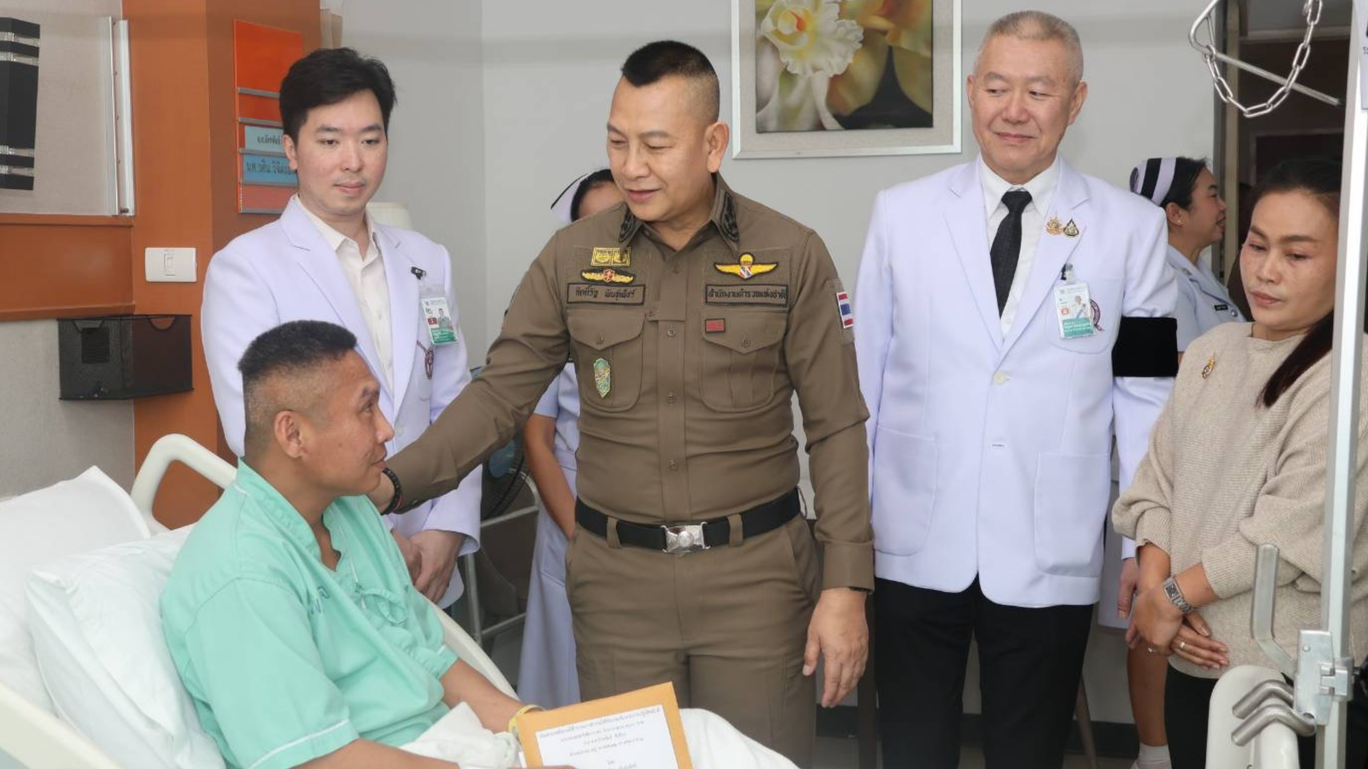 ทั้งนี้ ผบ.ตร. ได้กำชับให้ทีมแพทย์และพยาบาลดูแลรักษาอาการอย่างใกล้ชิดและดีที่สุด พร้อมเน้นย้ำว่า สำนักงานตำรวจแห่งชาติจะดำเนินการดูแลเรื่องสิทธิประโยชน์และสวัสดิการต่างๆ อย่างดีที่สุด