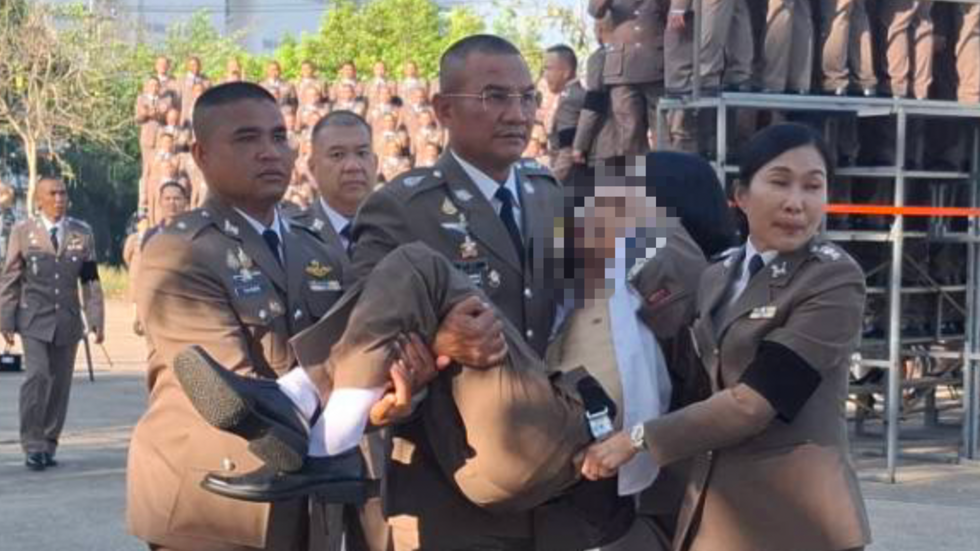 ภาวะผู้นำ…ผู้การศูนย์ฝึกอบรมตำรวจกลาง อุ้มนายร้อย 53 หลังเป็นลมหมดสติ ล้มทั้งยืน ขณะถ่ายรูปหมู่วันจบหลักสูตร เพื่อนๆ ร่วมรุ่นต่างตกใจทำอะไรไม่ถูก ก่อนนำส่งถึงมือแพทย์พ้นขีดอันตราย
