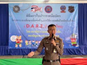 มอบประกาศนียบัตรผู้สำเร็จการศึกษา และรางวัลให้กับนักเรียนผู้ชนะเลิศเรียงความและนักเรียนผู้บันทึกการเรียนการสอนลงในสมุดได้อย่างครบถ้วนสมบูรณ์ แก่นักเรียน D.A.R.E. ชั้นป.5 และ ชั้นป.6 จำนวน นักเรียน 33 คน