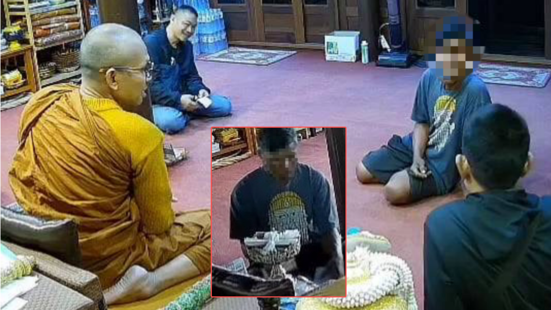 ล่าสุดตำรวจตรวจกล้องวงจรปิดจนได้เบาะแสสำคัญ และจับกุมตัวผู้ก่อเหตุได้แล้ว พร้อมคุมตัวไปขอขมาเจ้าอาวาส