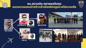 1. ตม.สนามบิน ขยายผลจับกุมขบวนการขนคนต่างด้าวเข้าเมืองผิดกฎหมายไปมาเลเซีย