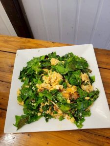 นอกจากนี้ยังต้องรดน้ำผักที่บ้านด้วย เพราะปลูกผักไว้หลายอย่างช่วยลดรายจ่าย และให้ลูกค้าได้ทานผักสด ๆ ฟรี เช่น ต้นชะพลู ต้นมันปูมะกรูด กะเพรา โหระพา