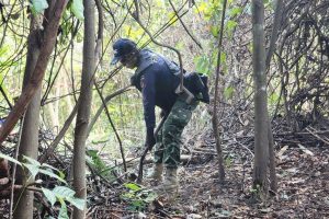 ชุดเก็บกู้และทำลายทุ่นระเบิดที่ 3 สนับสนุน หน่วยเฉพาะกิจกองพันทหารม้าที่ 614 กรมทหารราบเฉพาะกิจ กองทัพภาคที่ 2 ฐานปฏิบัติการม้าเหล็ก ตำบลภูผาหมอก อำเภอกันทรลักษ์ จังหวัดศรีสะเกษ