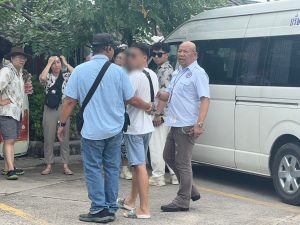 ต่อมาเวลาประมาณ 09.00 น. ผู้ต้องสงสัยได้ลงจากรถตู้และอำนวยความสะดวกให้แก่นักท่องเที่ยว และประสานงานกับ มัคคุเทศก์ ให้พานักท่องไปเที่ยวชมตามสถานที่ท่องเที่ยว เจ้าหน้าที่จึงแสดงตัวเข้าตรวจสอบพบว่าเป็นกลุ่มทัวร์สัญชาติจีน