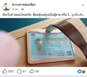 วันที่ 12 พฤศจิกายน 2568  ชุดสืบสวน กองบัญชาการตำรวจท่องเที่ยว ตรวจสอบสื่อโซเชียล พบเพจเฟซบุ๊กที่ใช้ชื่อ “ข่าววงการท่องเที่ยว“ ว่า มีบุคคลนำบัตรไกด์ลักษณะเหมือนปลอมขึ้นมาใช้ในการนำเที่ยว ได้สืบสวนติดตามจนทราบว่าบุคคลดังกล่าวพักอยู่ที่โรงแรมแห่งหนึ่ง บนเขาพระตำหนัก พัทยา
