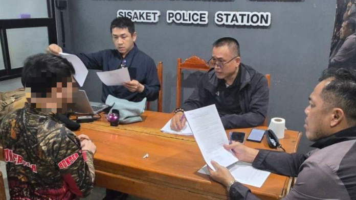 นำกำลังจับกุมนายณัฐประชา อายุ 40 ปี ตามหมายจับศาลอาญากรุงเทพใต้  ลงวันที่ 4 พ.ย.68 ข้อหา ร่วมกันฉ้อโกงประชาชน โดยแสดงตนเป็นคนอื่น โดยทุจริตหรือโดยหลอกลวง,นำเข้าสู่ระบบคอมพิวเตอร์ซึ่งข้อมูลคอมพิวเตอร์ที่บิดเบือนหรือปลอมไม่ว่าทั้งหมดหรือบางส่วน หรือข้อมูลคอมพิวเตอร์อันเป็นเท็จ โดยประการที่น่าจะเกิดความเสียหายแก่ประชาชน จับได้ที่หน้าบ้าน หมู่ 9 ต.หนองไผ่ อ.เมืองศรีสะเกษ จ.ศรีสะเกษ