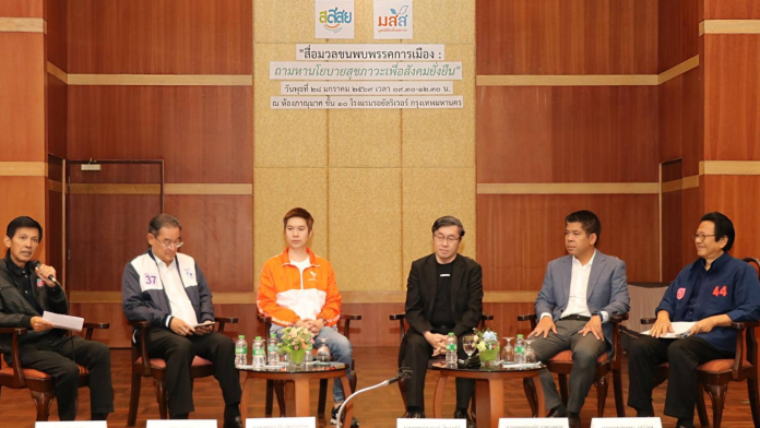 วันที่ 28 มกราคม 2569 ณ โรงแรมรอยัลริเวอร์ บางพลัด มีการเสวนา“สื่อมวลชนพบพรรคการเมือง : ถามหานโยบายสุขภาวะเพื่อสังคมยั่งยืน“จัดโดย: มูลนิธิสื่อเพื่อสุขภาวะ (มสส.)