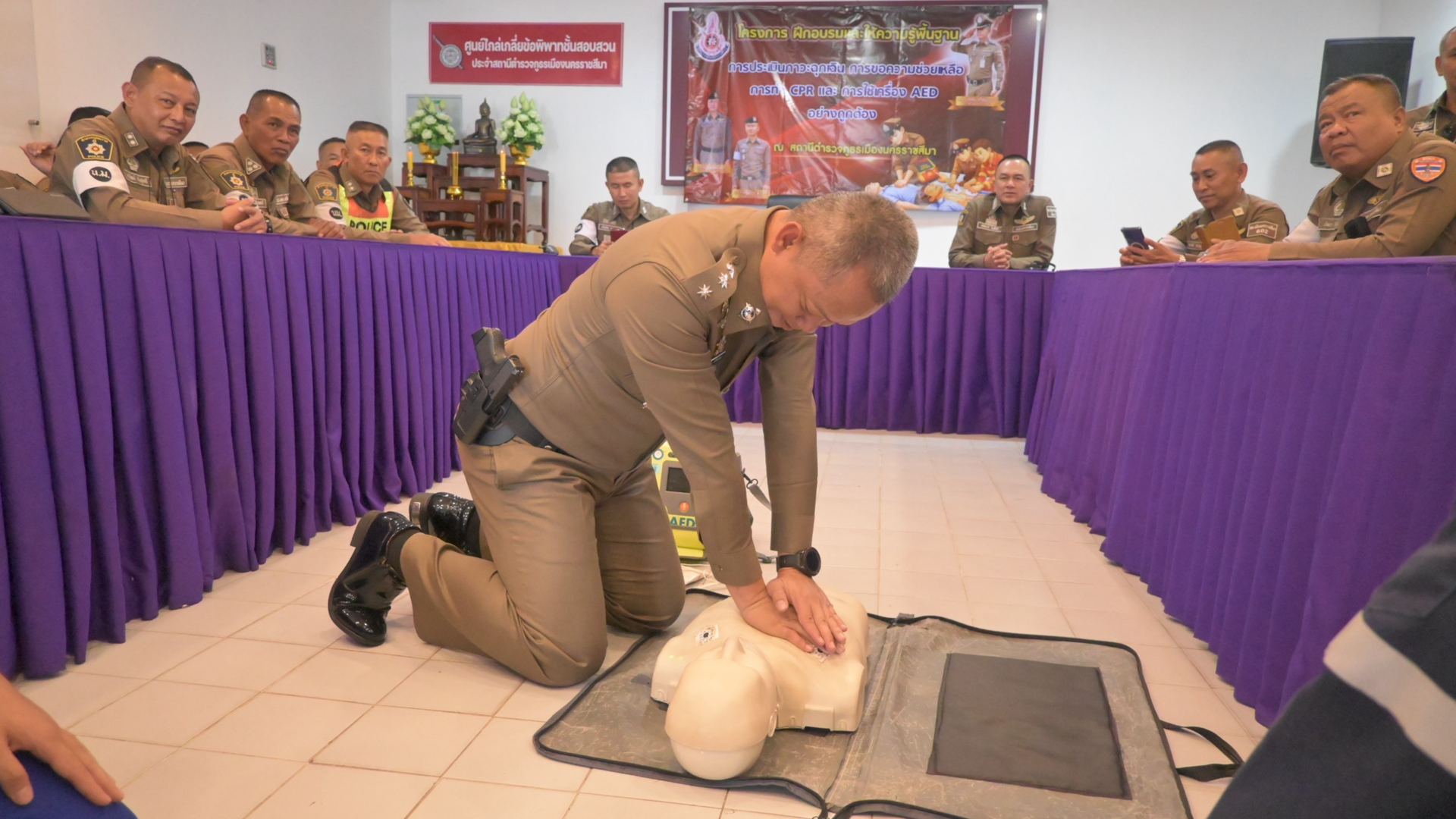 ตำรวจจราจรโคราชอบรม CPR–ใช้ AED เตรียมพร้อมช่วยชีวิตประชาชนช่วงสงกรานต์ 2569