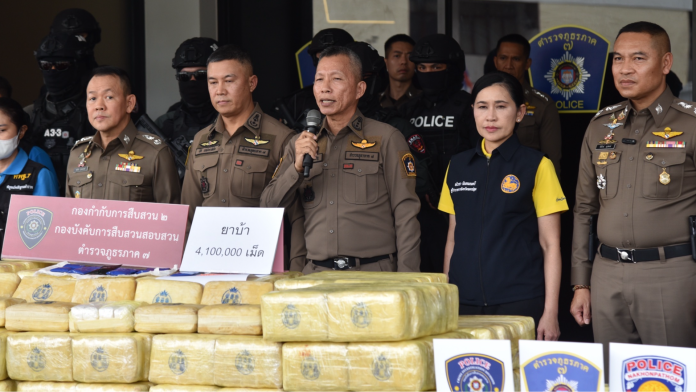 พร้อมยาบ้า 4,100,000 เม็ด คีตามีน 3 ถุง น้ำหนักรวมประมาณ 3.15 กรัม รถยนต์กระบะแคป ยี่ห้อ มิตซูบิชิ รุ่นไทรทัน สีเทา จำนวน 1 คัน รถยนต์กระบะสี่ประตู ยี่ห้อ มิตซูบิชิ รุ่นไทรทัน สีขาว จำนวน 1 คัน รถยนต์อเนกประสงค์ ยี่ห้อ มิตซูบิชิ รุ่น ปาเจโร่ สีขาว จำนวน 1 คัน โทรศัพท์มือถือ 2 เครื่อง จับกุมได้ที่ริมถนนเพชรเกษม (สี่แยกปากท่อ) ม.4 ต.ดอนทราย อ.ปากท่อ จ.ราชบุรี เมื่อวันที่ 11 ตุลาคม 2568 เวลาประมาณ 03.00 น.